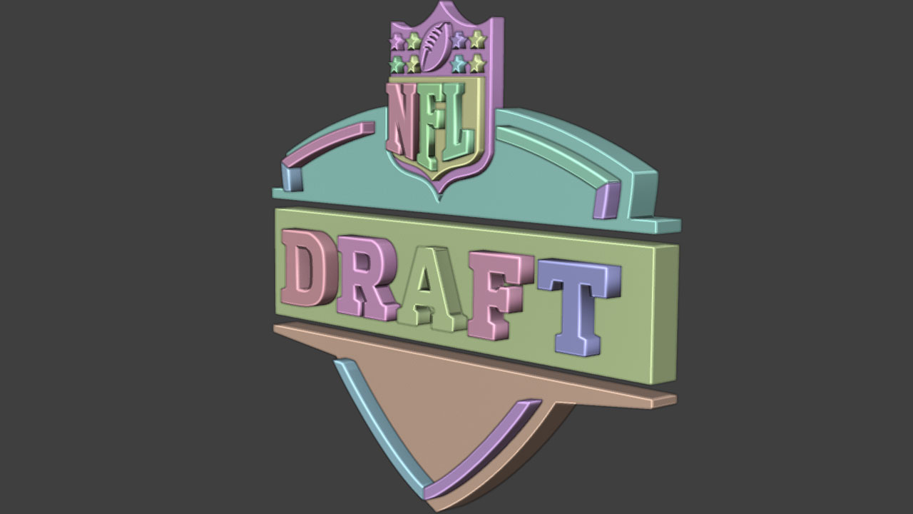 Using Blender, I created 3D animations for the player name text using geometry nodes. I then created a clean SVG of the NFL draft logo in Adobe Illustrator, then extruded it in Blender into a 3D element.